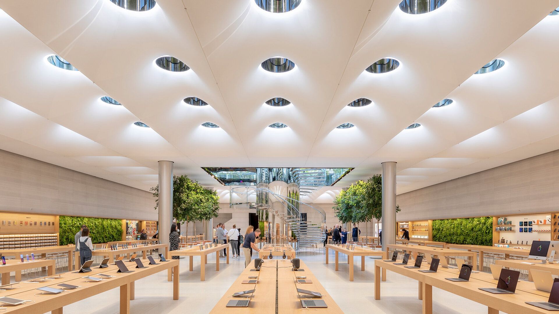 Like the rest of their design, Apple has chosen a simple lighting setup in their stores to complement the idea behind the rest of their design: balance and stability.